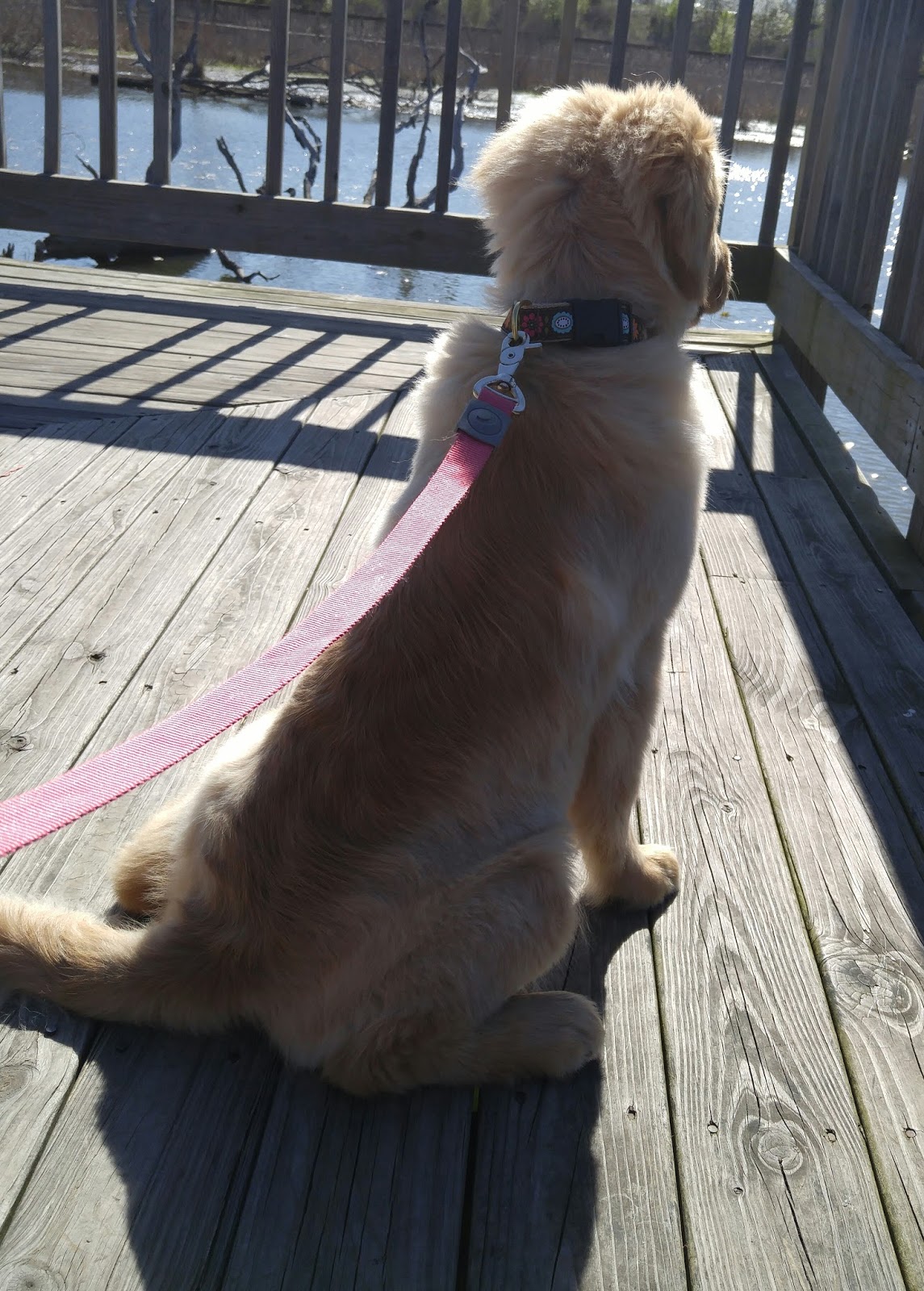 Sometimes I just like to hang out with my friends from Canada. Well, I like hanging out watching them....but they don't always like me around. I don't understand what all the honking is about! But one thing for sure is the family leader is very loud and very bossy so we don't hang around too long. Sometimes when we walk to the boardwalk nature preserve we see turtles. Big turtles and baby ones too. As you can see....I'm very patient.